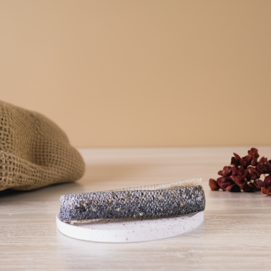Reich an Omega-3-Fettsäuren für gesunde Haut und glänzendes Fell! Unsere getrocknete Lachshaut ist ein natürlicher Fisch-Kausnack – ideal für Hunde mit empfindlichem Magen oder Allergien gegen Fleisch.