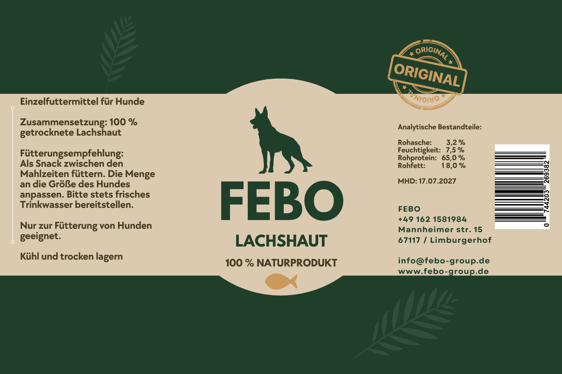 Zusammensetzung: 100 % getrocknete Lachshaut