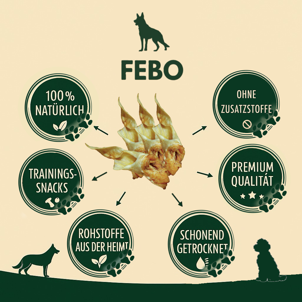 Als Snack zwischen den Mahlzeiten füttern. Die Menge an die Größe des Hundes anpassen. Bitte stets frisches Trinkwasser bereitstellen.