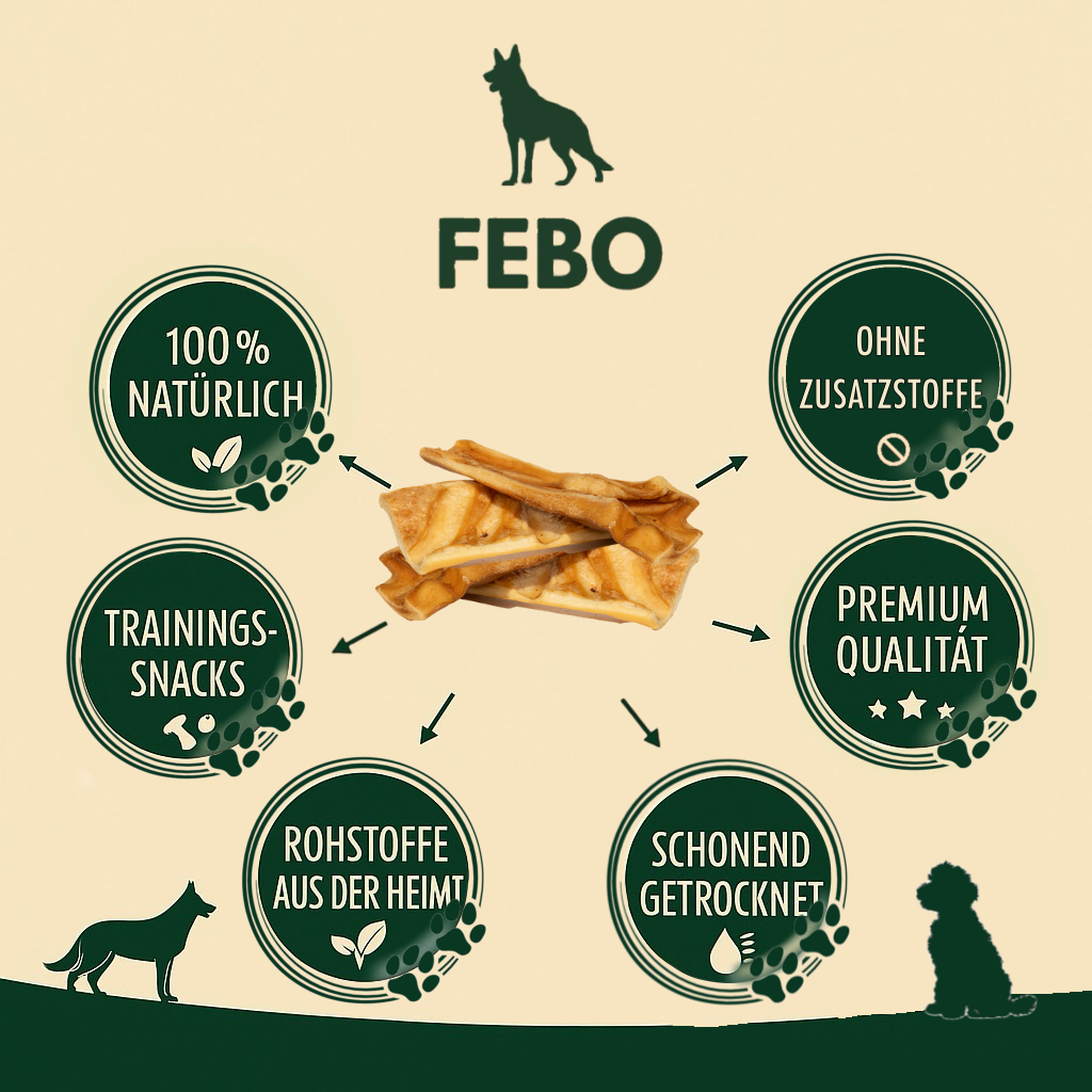 Als Snack zwischen den Mahlzeiten füttern. Die Menge an die Größe des Hundes anpassen. Bitte stets frisches Trinkwasser bereitstellen.
