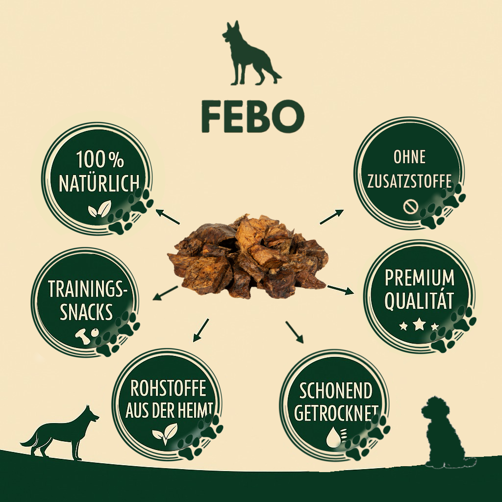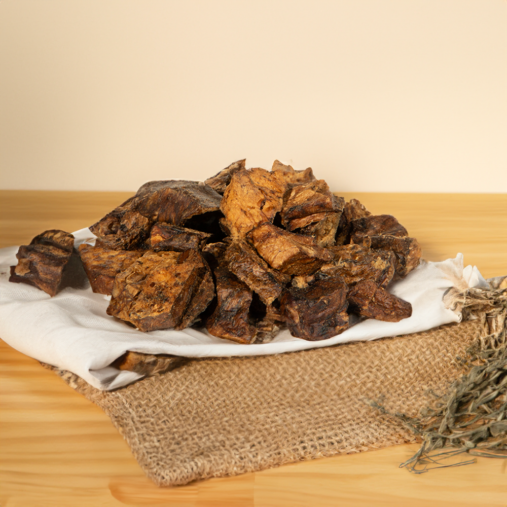 Als Snack zwischen den Mahlzeiten füttern. Die Menge an die Größe des Hundes anpassen. Bitte stets frisches Trinkwasser bereitstellen.