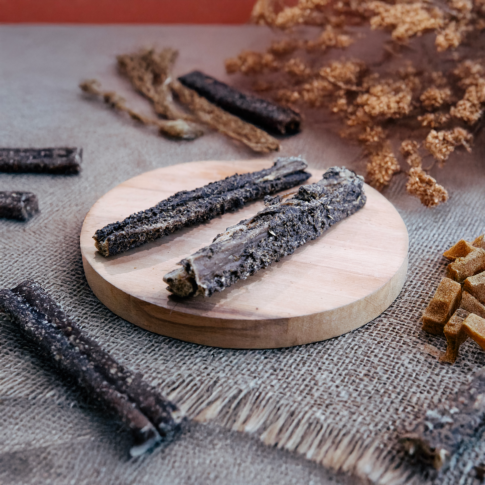 Als Snack zwischen den Mahlzeiten füttern. Die Menge an die Größe des Hundes anpassen. Bitte stets frisches Trinkwasser bereitstellen.