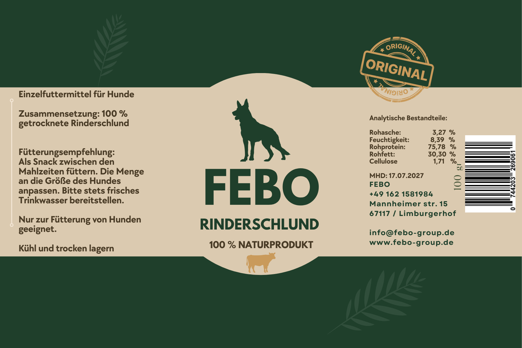 Zusammensetzung: 100 % getrocknete Rinderschlund